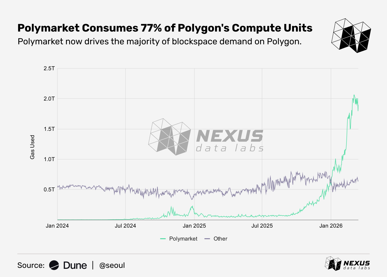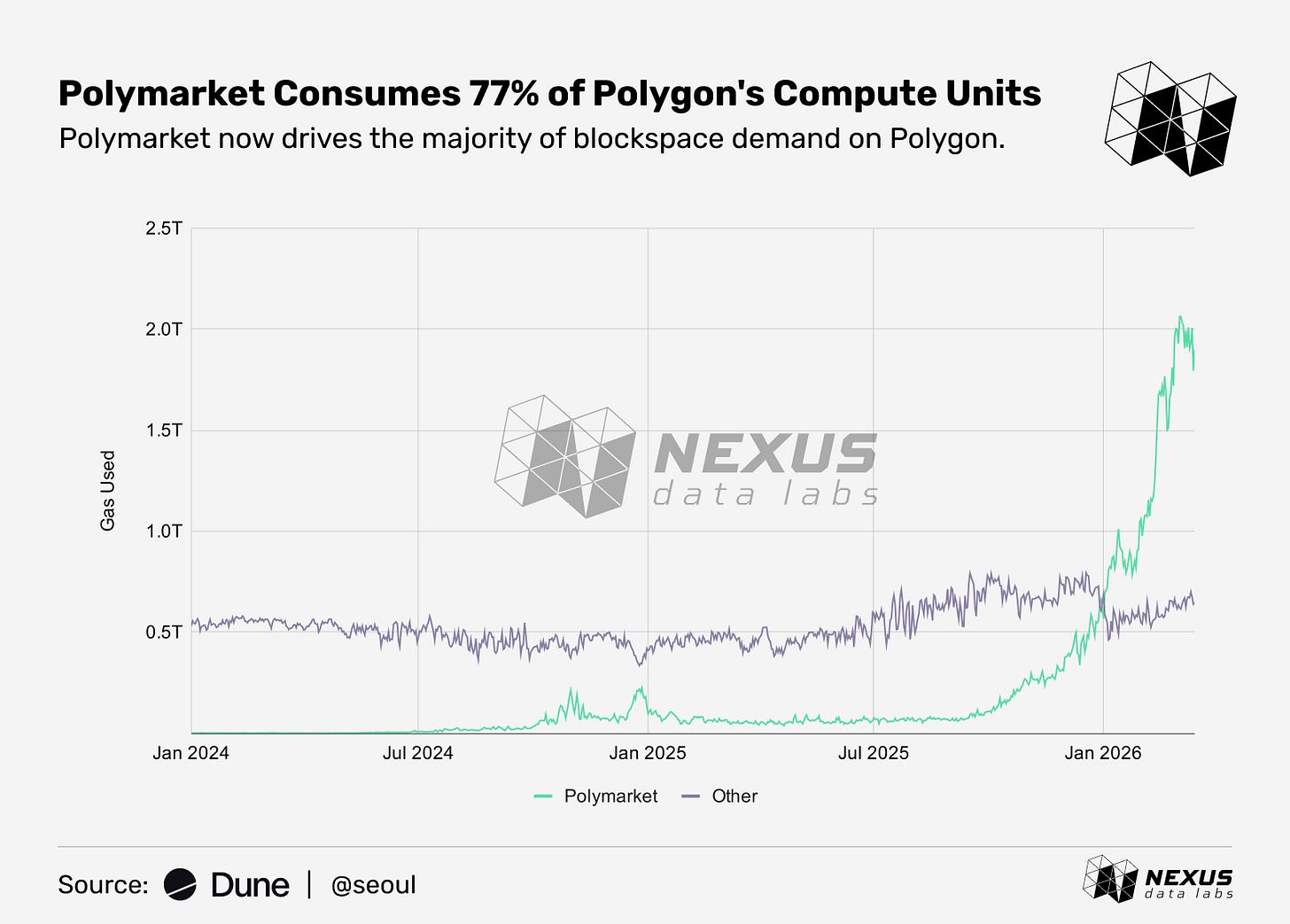 Polymarket is Polygon's biggest tenant, consuming 77% of its blockspace