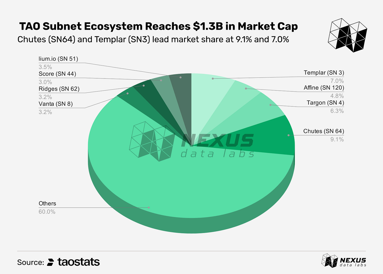 In March 2026, $TAO moved from $177 to $333, an 88% gain that outpaced a broader market deep in the red. Subnet market cap climbed to $1.38B over the same period, with individual tokens ranging from $1M to $126M and several subnet tokens posting 200–400% monthly gains.