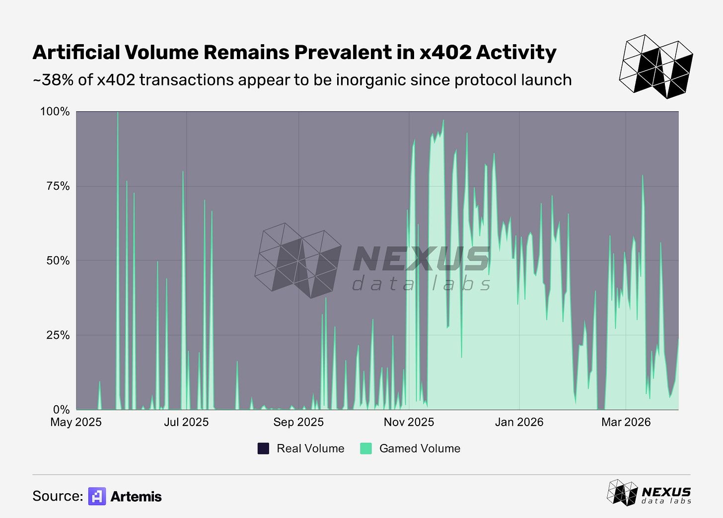 Approximately 38% of x402 cumulative transactions appear inorganic