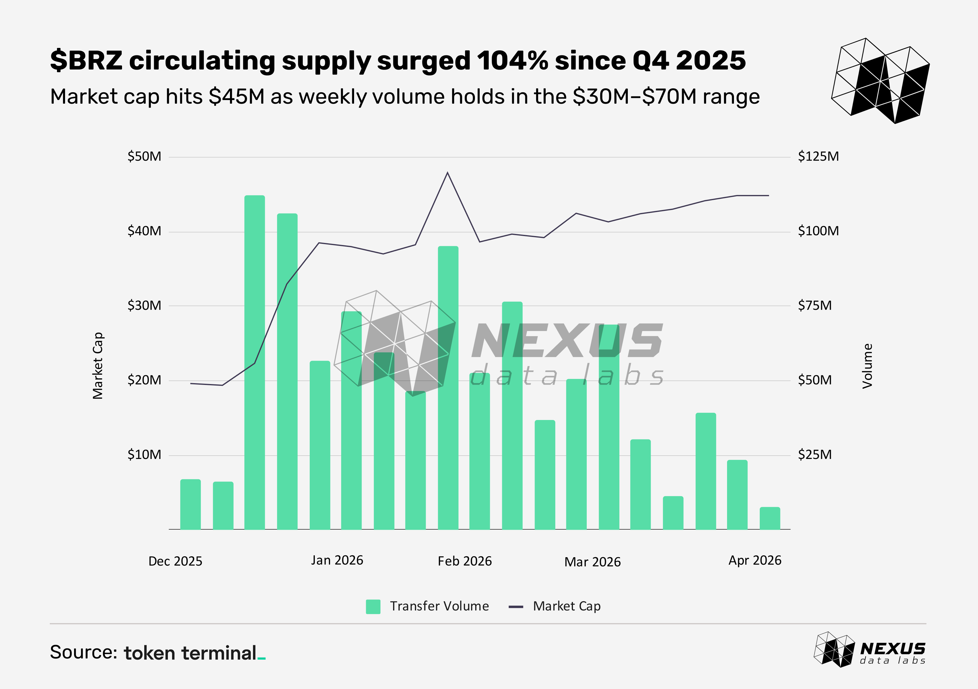 BRZ has processed $980M in volume in 2026 on $44.8M circulating supply
